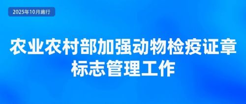 日前,农业农村部制定印发了《动物检疫证章标志规格样式及制作要求》和《动物检疫证明等填写及应用规范》。两项《规范》明确,自2025年10月1日起,启用新版动物检疫标志;自2026年1月1日起,停止使用旧版动物检疫标志,不再使用粘贴在动物产品包装上的小标签。各地要切实抓好动物检疫标志加施工作,确保在生猪胴体全覆盖,加快推进在牛羊胴体加施,逐步扩大其他产品加施覆盖面。对畜禽产品加施动物检疫标志时,只需选择一类动物检疫标志。
