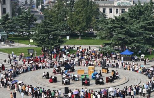 “金秋礼赞”厚植家国情怀。港东五街《乐颂中华》交响乐展演、中山广场“琴韵颂祖国”钢琴快闪等活动,以音乐、艺术等形式抒发爱国情感,吸引大量市民游客参与互动,成为假期街头亮丽的风景线。