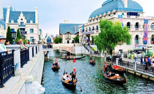 国庆假期,游客乘坐贡多拉游船在东方水城游览,享受惬意假日。大连新闻传媒集团记者张瑜 摄