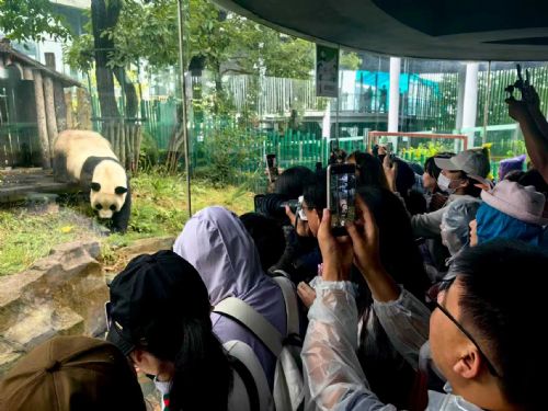 萌萌的大熊猫吸引大量游客围观。大连新闻传媒集团记者吉存 摄