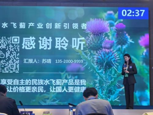作为辽宁丰瑞天成生物技术有限公司的代表,苏晴在农产品加工赛道上展示了“水飞蓟精深加工项目”。水飞蓟是辽宁重点发展的特色农产品,通过科技研发延伸产业链,项目实现了从传统种植到高附加值产品的跨越。路演中,苏晴以扎实的技术数据和清晰的商业模式,展现了辽宁在农业科技创新领域的探索成果,赢得评委高度认可。