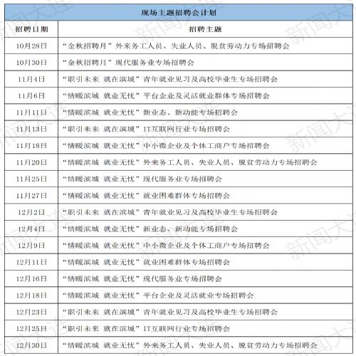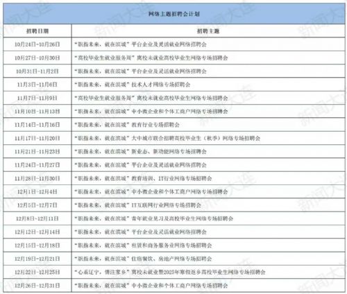 招聘会可能因临时活动安排等原因导致排期变动,求职者可提前登录大连市人力资源市场网站或关注大连人力资源市场官方微信等在线查看最新招聘计划、用人单位及岗位信息。