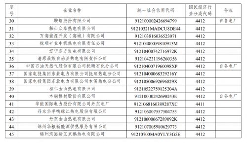 1. 辽宁省2026年度全国碳排放权交易市场发电行业重点排放单位名录