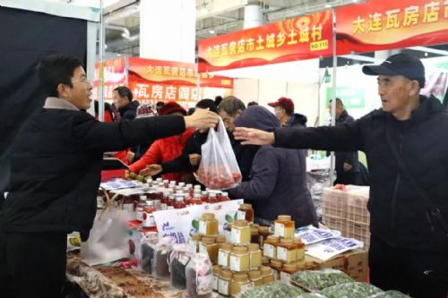 为破解农产品“销路窄、溢价低、品牌弱”的难题,展销会特意设置“驻村干部展区”,组织瓦房店17个村的40余位驻村第一书记和选调生参展,实现特色农产品“从地头到餐桌”零中间环节。展会首日,土城乡妮娜皇后葡萄销量便突破300斤,本地望香红苹果销量达350斤,交易额超1500元,各类水果累计销量超5000斤,带动农户户均增收显著。此外,“瓦市九礼”助农品牌将瓦房店苹果、葡萄、海参等九大特色农产品整合包装,进一步提升产品附加值,更拓宽了我市农产品的品牌影响力。