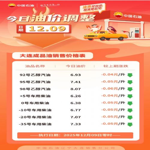 记者从中国石油辽宁大连销售分公司了解到,12月8日24时起,国内成品油价格再次小幅下调。大连地区,92号汽油价格每升下调0.04元,降至每升6.93元。按一般家用汽车油箱50L容量计算,加满一箱92号汽油少花2元。
