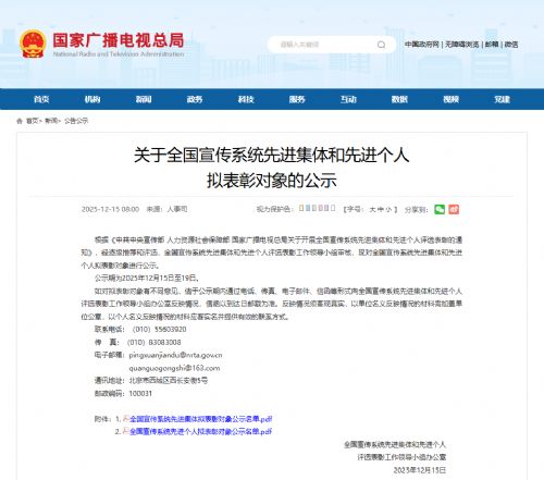 | 大连1个集体、1名个人拟获全国表彰 | | 来源:大观新闻 微信公众号 点击数:86次 更新时间:2025/12/16 12:46:30 |