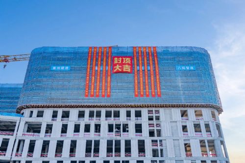封顶之后,我们通过科学安排工序,严把质量关、安全关,采用绿色施工和智能建造等技术手段,高效推进幕墙安装、机电调试及医疗专项工程,按时完成施工任务,确保2027年竣工交付。