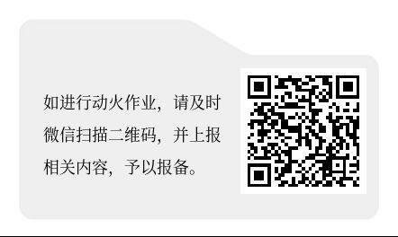 全面执行动火作业扫码报备制度。焊接、切割等动火作业提前通过指定平台扫码报备后方可开展。作业时需专人现场监护、配备足量灭火器材,与敏感区域保持安全距离,作业完毕后留守检查30分钟以上,确认无隐患再撤离。