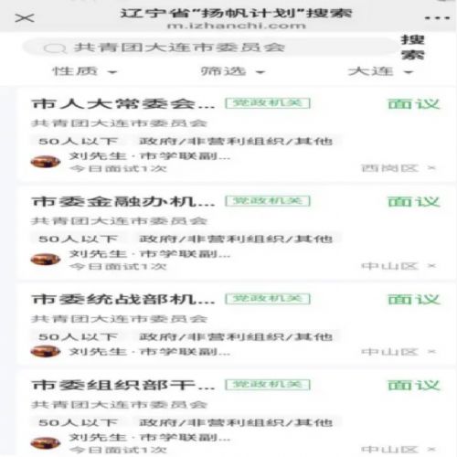 2.登录辽宁省“扬帆计划”端口,搜索“共青团大连市委员会”。