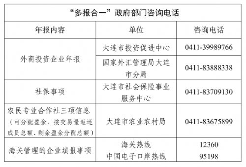 涉及年报公示以及“多报合一”有关问题,请分别咨询登记机关或相关政府部门。