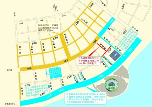 六、沿途单位和市民请提前合理安排出行。赛事期间可由东快路、万鼎路、和丰路、万景街(和丰路以西路段)、大连湾海底隧道进出梭鱼湾地区。