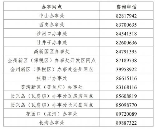 附:各办事网点咨询电话