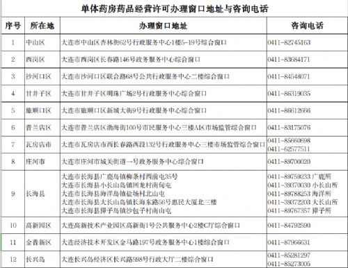 各单体药房可前往线下政务服务窗口或通过政务服务线上平台向所在地县区级市场监管部门提交申请、咨询业务。各所在地办理窗口地址与咨询电话附后。