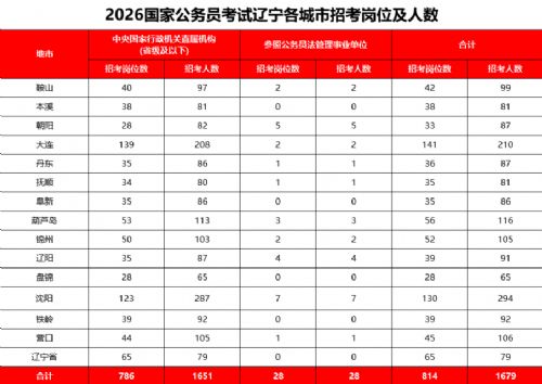 本次国考涉辽岗位共计814个