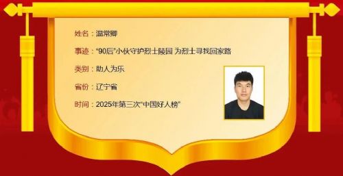 2014年的一场车祸导致温常卿左小腿截肢,从2015年开始,他戴着义肢为中国人民志愿军烈士义务守陵,并通过互联网等平台为烈士寻亲。目前,已为多名烈士找到亲人。