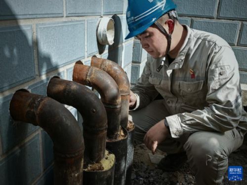 图为辽宁大唐国际沈抚热力有限责任公司的工作人员正在检修设备。(受访者供图)