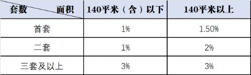 个人购买商品房(住宅),征收契税,税率根据家庭套数和房屋面积不同分类如下: