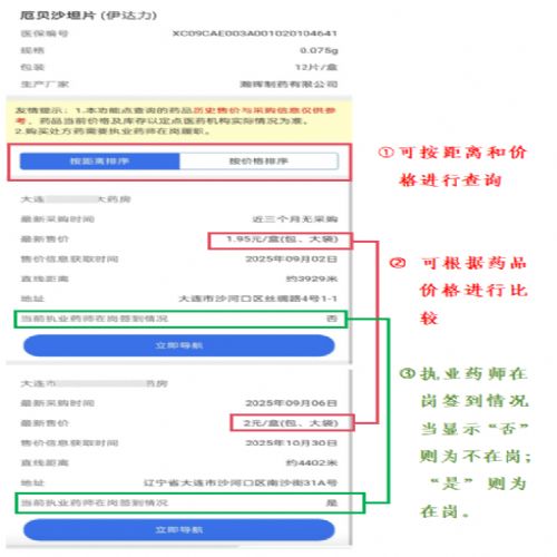 近日,大连医保药品“比价神器”升级加码,不仅能查药价、导航购药,还新增执业药师在岗实时查询功能,让参保患者买药放心、用药安心。