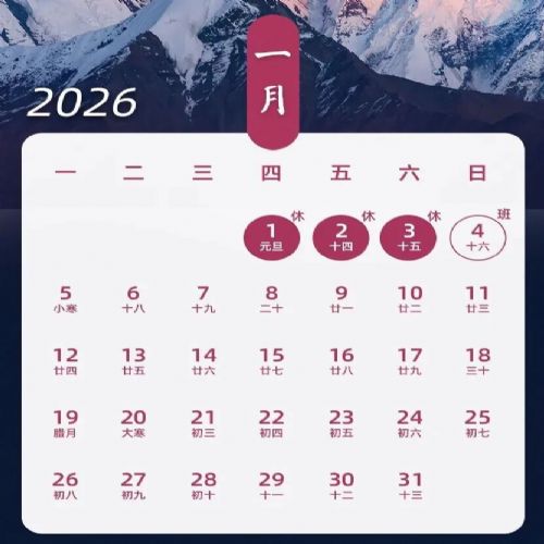 此前,国务院办公厅发布的关于2026年部分节假日安排的通知中,元旦放假安排如下:1月1日(周四)至3日(周六)放假调休,共3天,1月4日(周日)上班。