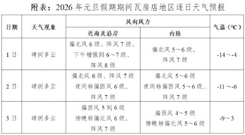 | 来了!瓦房店元旦假期天气 | | 来源:小编·然仔 瓦房店广播电视台 微信公众号 点击数:85次 更新时间:2025/12/31 12:22:09 |