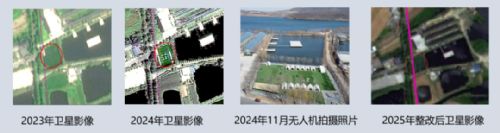 借助历史影像比对,市执法队对全市饮用水水源地一、二级保护区内风险源进行了全面排查,精准识别出围网破损、违规搭建等问题。在与水务、公安及水库管理部门的联合行动中,遥感技术更是发挥了“导航”作用,为现场检查提供了清晰的目标定位。