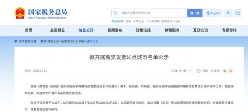 为进一步激发消费需求,释放消费潜力,三部门于2025年12月底发布通知称,将支持50个左右城市开展有奖发票试点工作,试点城市自行确定中奖发票最低票面额度(不低于100元)、中奖比例和奖项设置,单张发票奖项金额原则上不超过800元,政策实施期为6个月。近期,三部门组织开展了有奖发票试点城市评审工作。这一评审结果公示期为2026年1月23日至2026年2月2日。