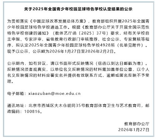 《关于2025年全国青少年校园足球特色学校