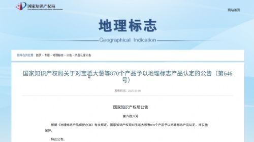 加快推进地理标志统一认定制定建立,按照国家知识产权局、省知识产权局工作要求,市市场监管局(市知识产权局)会同市农业农村局和市海洋发展局,根据前期地理标志统一认定保护资源信息核查情况的基础上,于2024年9月,在全市开展农产品地理标志信息准确性、农产品地理标志与地理标志产品的政策衔接及信息一致性的确认工作。经国家知识产权局审核后,先后发布了地理标志产品保护认定公告(国家知识产权局公告第646号)和地理标志专用标志核准使用公告(国家知识产权局公告第650号)。