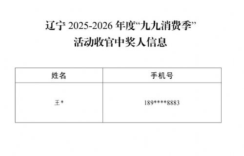 关于辽宁2025-2026年度“九九消费季”活动收官中奖名单的公告