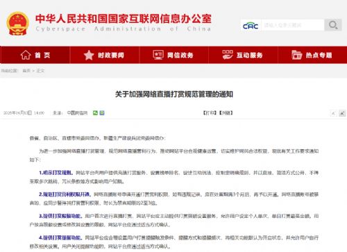为进一步加强网络直播打赏管理,规范网络直播营利行为,推动网站平台合规健康运营,切实维护网民合法权益,现就有关工作要求通知如下: