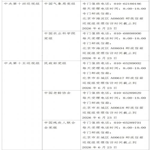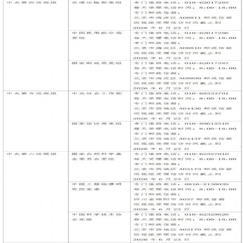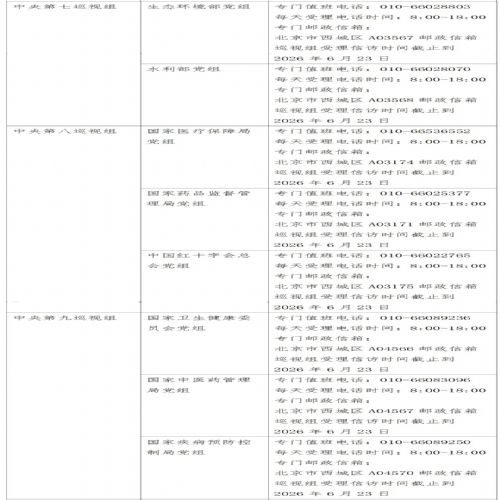 已进驻中央巡视组联络方式:
